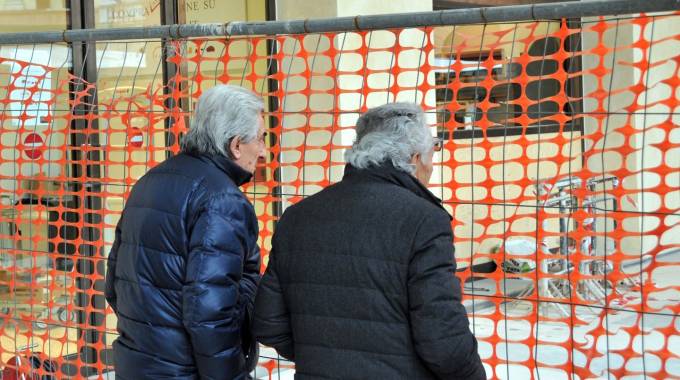 Serra & Co: anziani che bisticciano – cardigan di lana beige, mani intrecciate dietro la schiena – davanti al cantiere del nostro sciagurato domani.